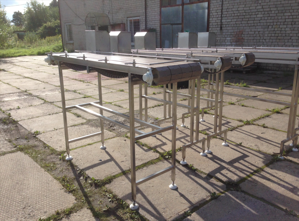 Этот очень универсальный вариант конвейера доступен в различных размерах — до ширины 300 мм. Простая структура, приятный внешний вид, стабильная работа и простота обслуживания делают его широко используемым в производстве. Мы изготовим его в соответствии с вашими требованиями, и можно будет приспособить его практически к любым задачам. Формы исполнения — прямой, поворотный, наклонный и т.д.
