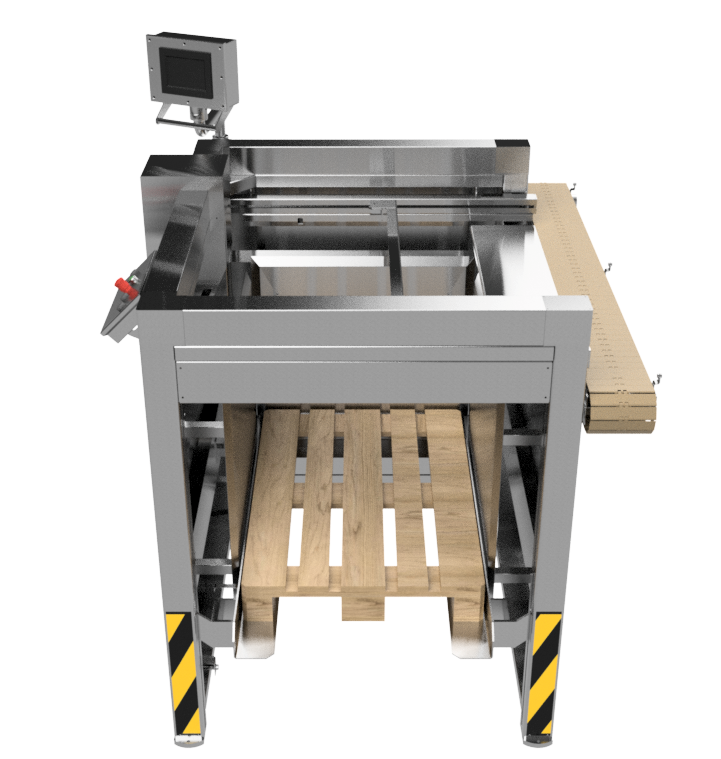 Депаллетайзер универсальный — полуавтоматическая установка, способная разгружать тару, загруженную на поддон, и размещать её на подающем конвейере следующей машины. Депаллетизация осуществляется на основе запрограммированных шаблонов. Все функции и шаблоны управляются при на панели оператора с сенсорным экраном.