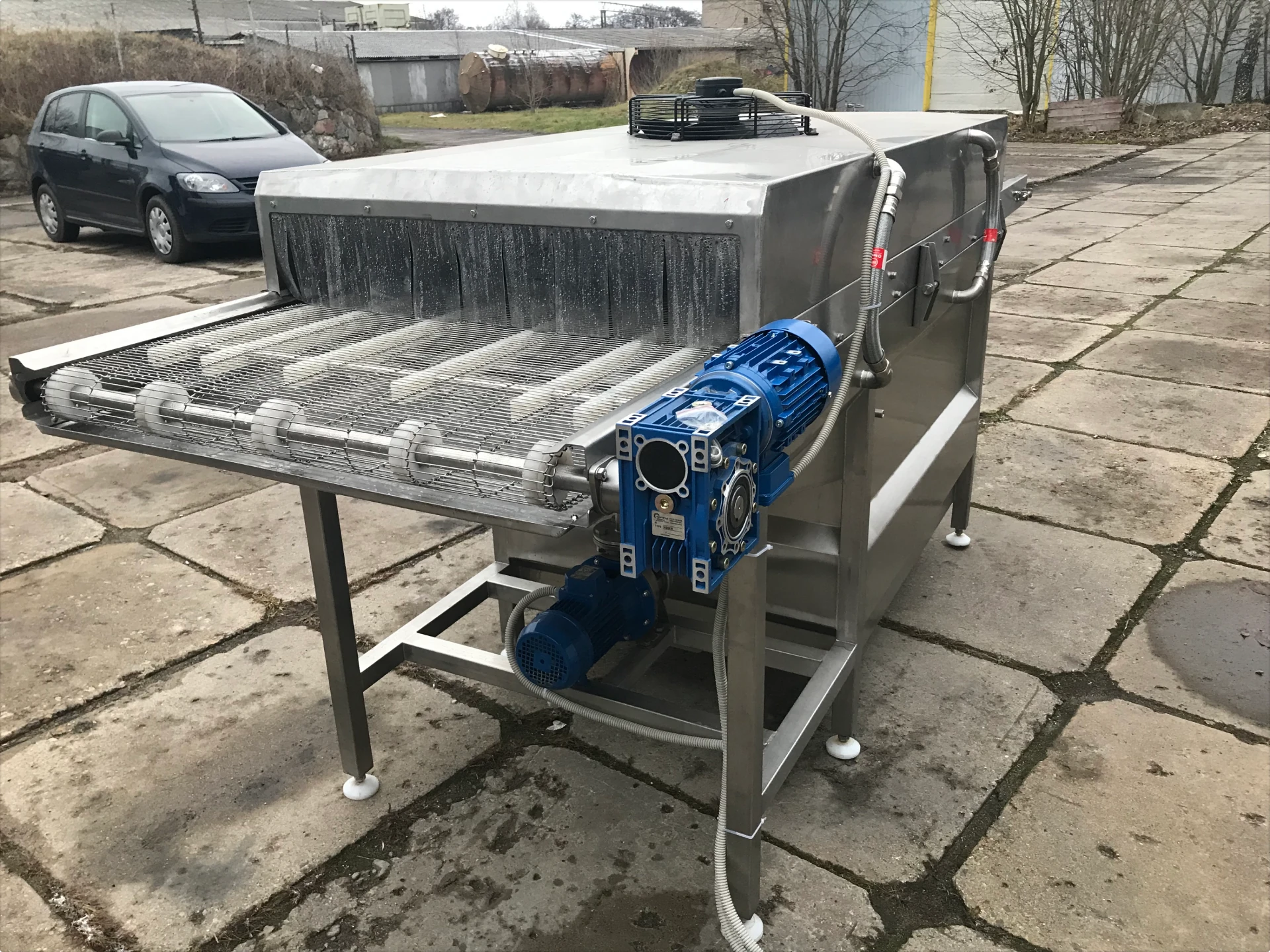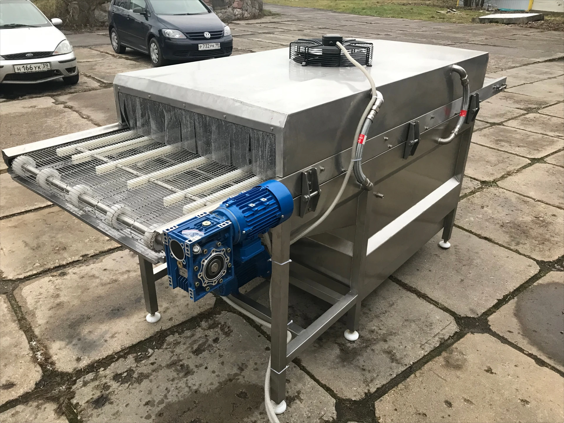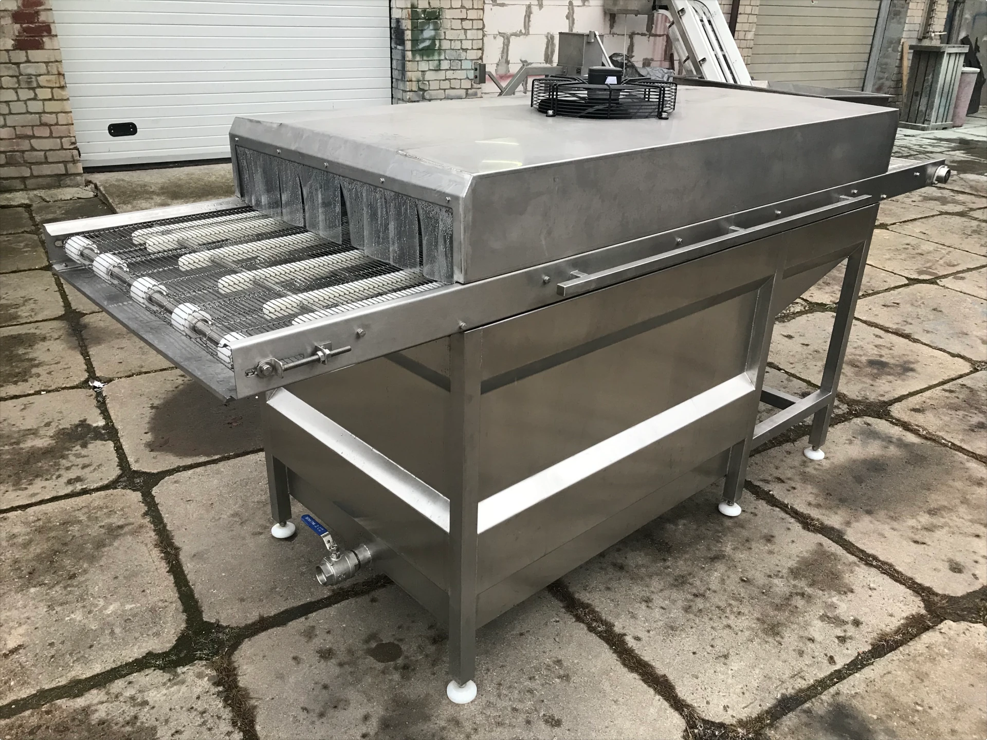 • Конвейерная система: сетчатый или роликовый транспортер из нержавеющей стали, с частотным регулированием скорости.