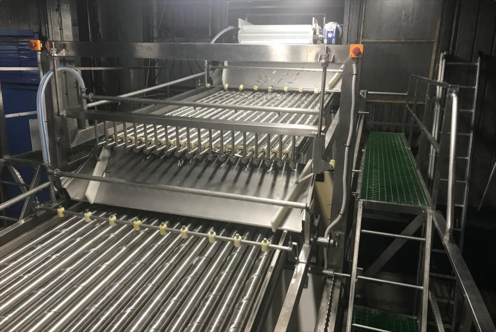 При подаче рыбы навалом она стремиться попасть в положение вдоль оси сортировочных валов. Мелкая рыба, в зависимости от выбранного зазора будет проваливаться в щели и попадать на один из отводящих конвейеров, более крупная продвигаться на выход и попадать на другой конвейер. Разделение может производиться на несколько фракций. Это зависит от выбранных зазоров и количества отводящих лотков.