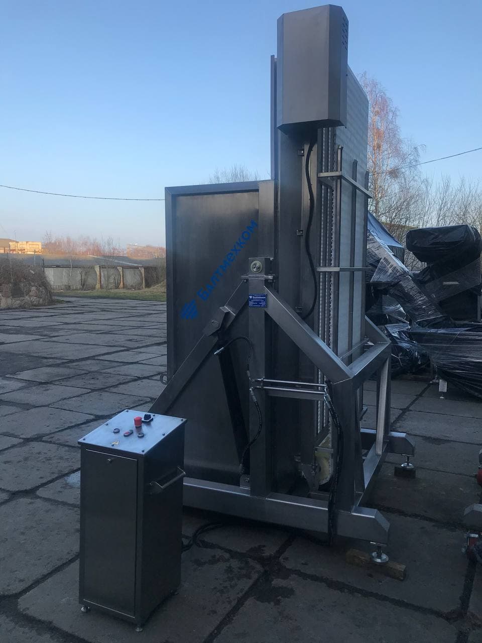 — Безопасность: гидравлическая схема подъема обеспечивает работу опрокидывателя только в момент нажатия на кнопку . Степень защиты электрооборудования соответствует стандарту IP65.
