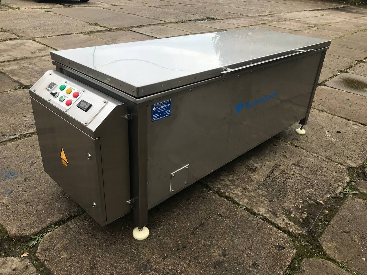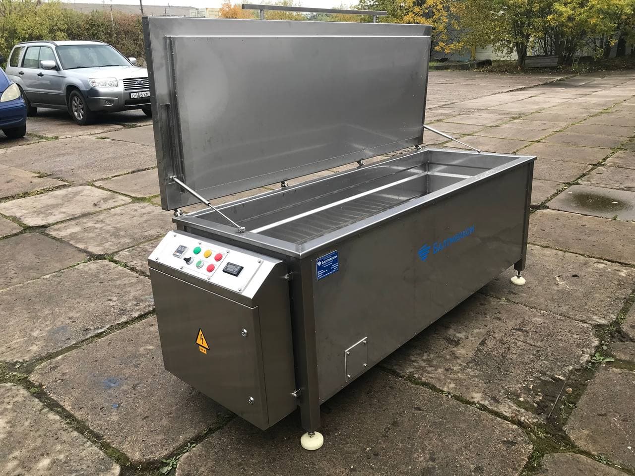 Пастеризатор состоит из емкости с встроеными ТЭНами и слоем теплоизоляции. Емкость оборудована откидной смотровой крышкой с газлифтами и подающим и сливным патрубками. Пастеризатор оснащается щитом управления с защитой от перегрева и датчиком температуры.